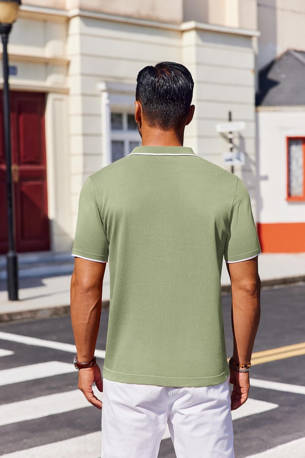 Men’s knitted polo shirt features a classic polo collar, clean V-neck and refined contrast trims for a smart, modern look.