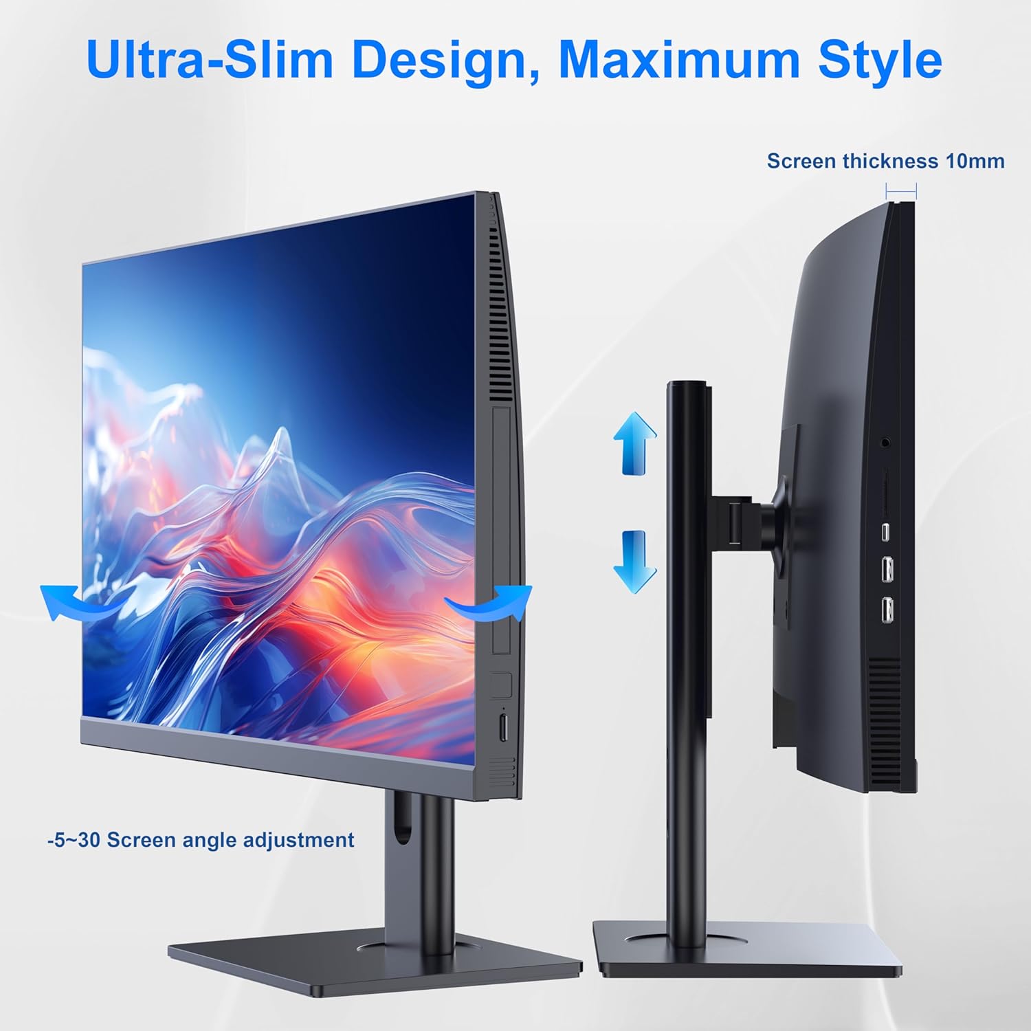 【Adjustable screen】The screen height of this desktop computer can be adjusted according to our needs, ranging from 43.3 centimeters to 56.2 centimeters.Full-screen design with narrow edges on three sides brings a boundless and immersive visual experience.10mm ultra-thin bezel design with wider viewing angles for better visual quality.
