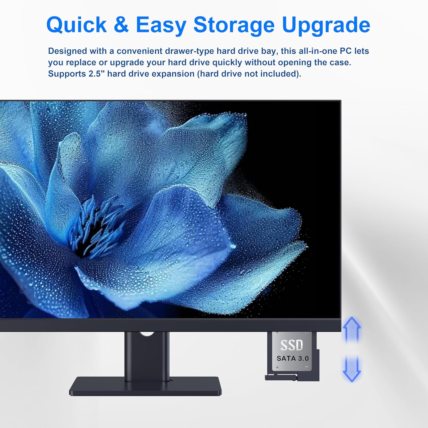 【Exceptional Performance】This all-in-one computer adopts the most advanced 12th generation Alder Lake N95 quad core processor, integrates UHD graphics, supports up to 4K 60Hz video output, enhances visual functions, and has a base frequency of 1.7GHz and a maximum of 3.4GHz.. The computer comes with 16GB of DDR4 RAM and a 512GB SSD, which runs faster and more stable for tasks like document editing, web surfing, and light multitasking.