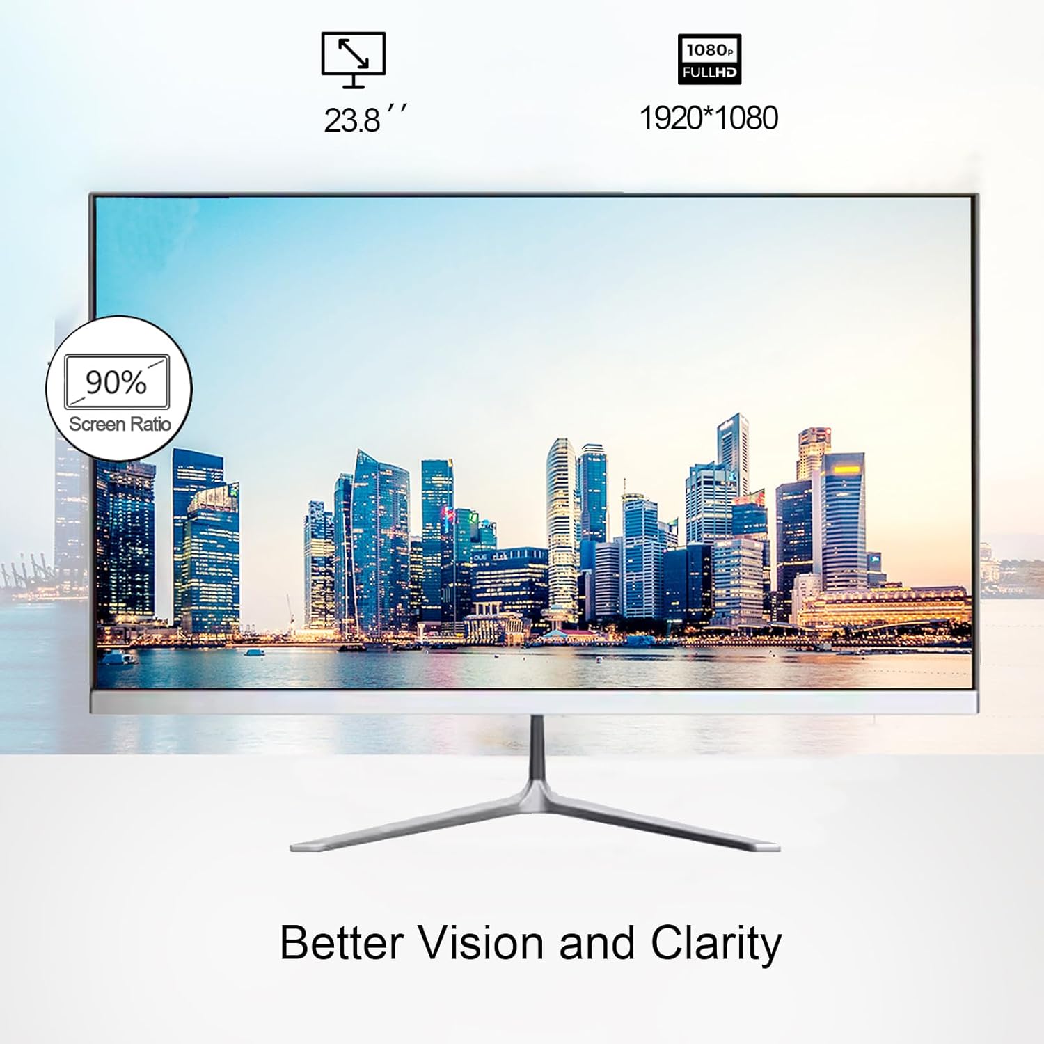 【Outstanding 23.8″ Display】1920 x 1080 high resolution LED screen (Anti-glare, Flicker-free) provides you with a sharp and clear text and images. The ratio expands the vertical space of the screen, showing more content, providing a comfortable visual experience and greater efficiency when browsing web pages or documents.