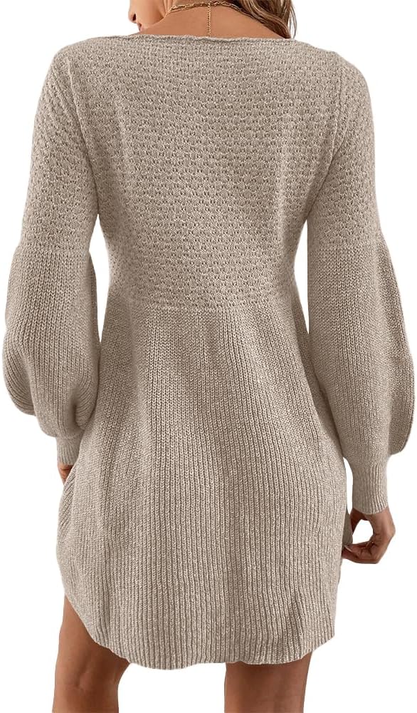 Saodimallsu Womens Crew Neck Mini Sweater Dress Lantern Sleeve High Waisted Rib Knit Dresses Cozy Pullover Long