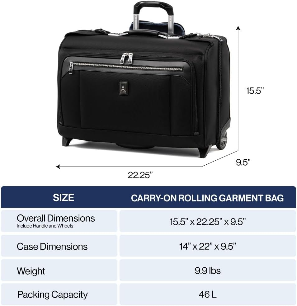 Travelpro Platinum Elite Carry-On Rolling Garment Bag, Shadow Black, One Size, Platinum Elite Carry-on Rolling Garment Bag
