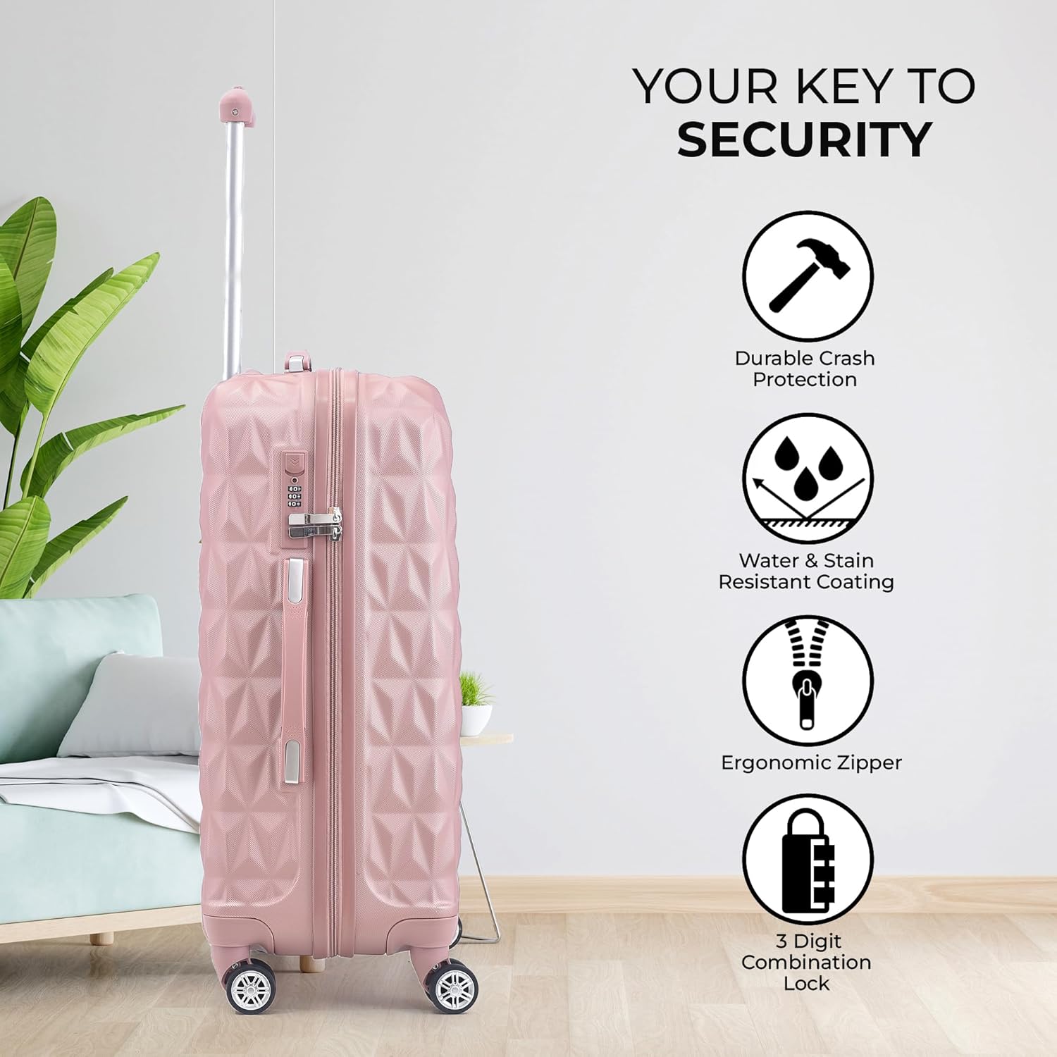 ABS is the perfect material for suitcases; as it is strong & durable – yet also light enough to keep the weight of the suitcase down so you can pack more of your things.
