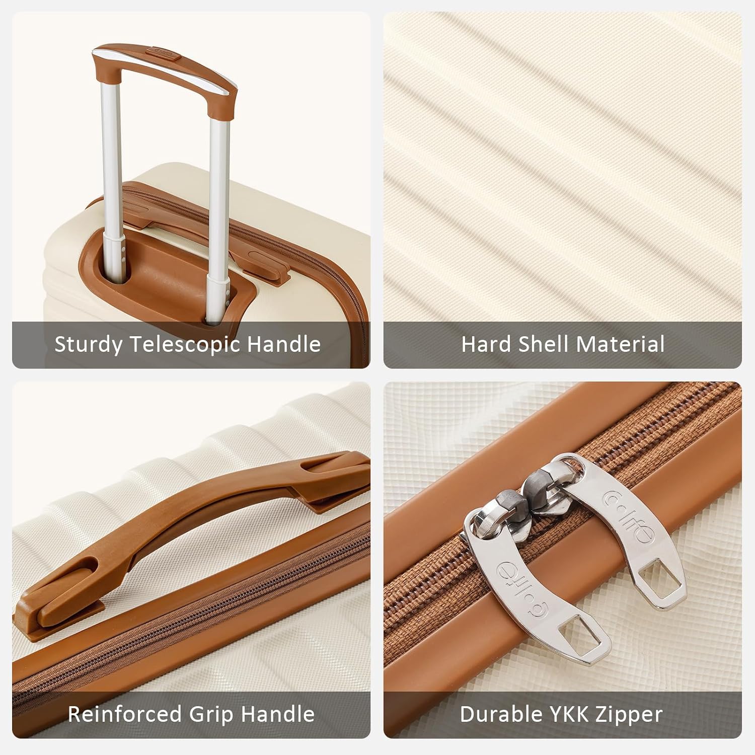 ABS Hard Shell + Telescopic Handle:Upgrade your travel gear with our luggage, featuring a durable ABS hard shell that’s impact-resistant, waterproof, and scratch-proof to protect your belongings. 3-stage aluminum alloy telescopic handle extends and retracts smoothly, ensuring effortless maneuvering through airports and stations. Combining durability and functionality, it’s the perfect travel companion for all your adventures