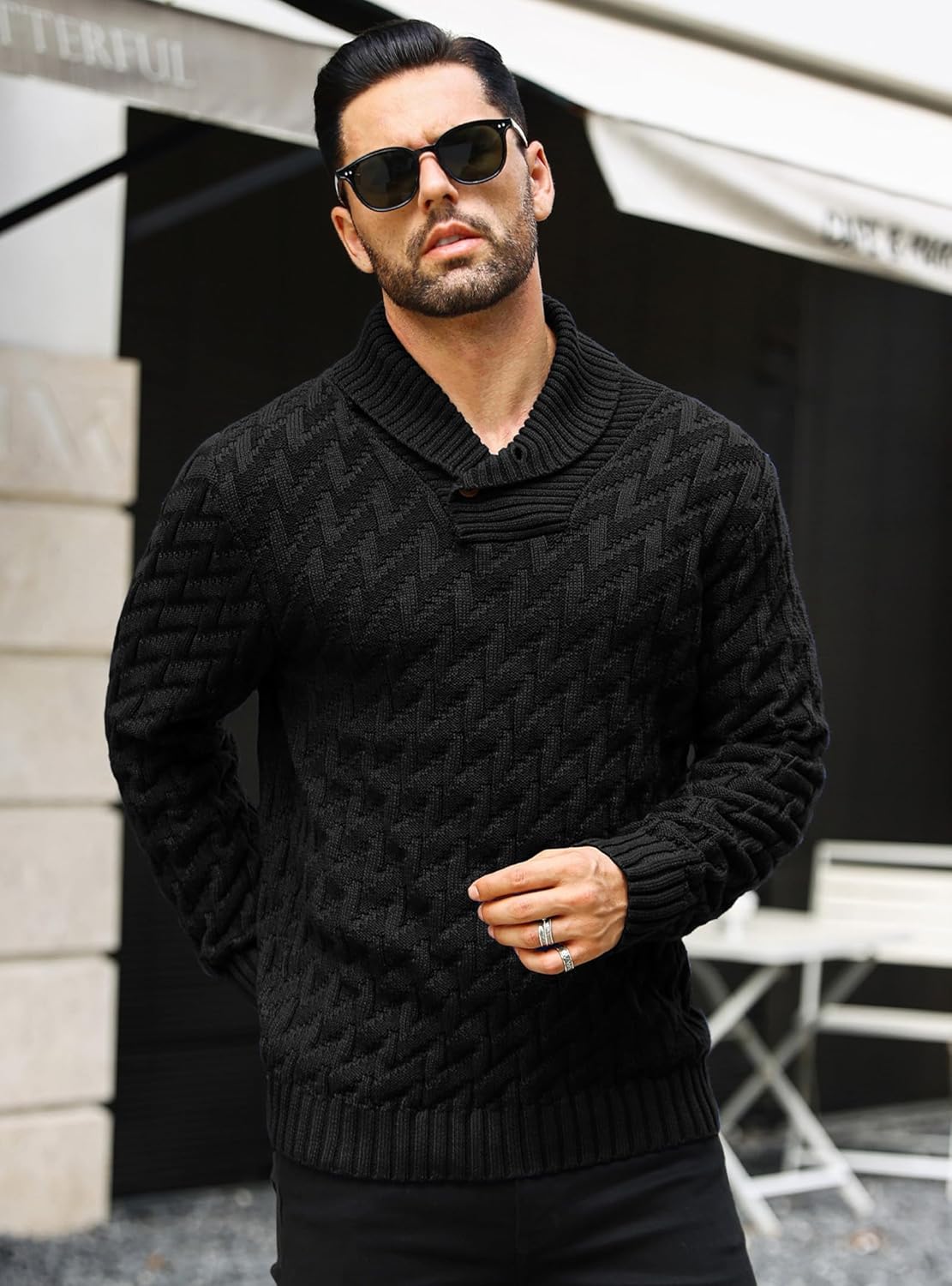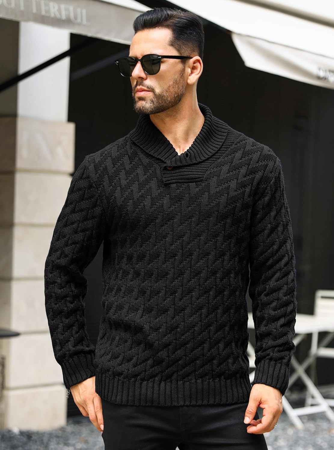 Men’s Turtleneck Sweater Shawl Collar Pullover Business Casual Sweaters