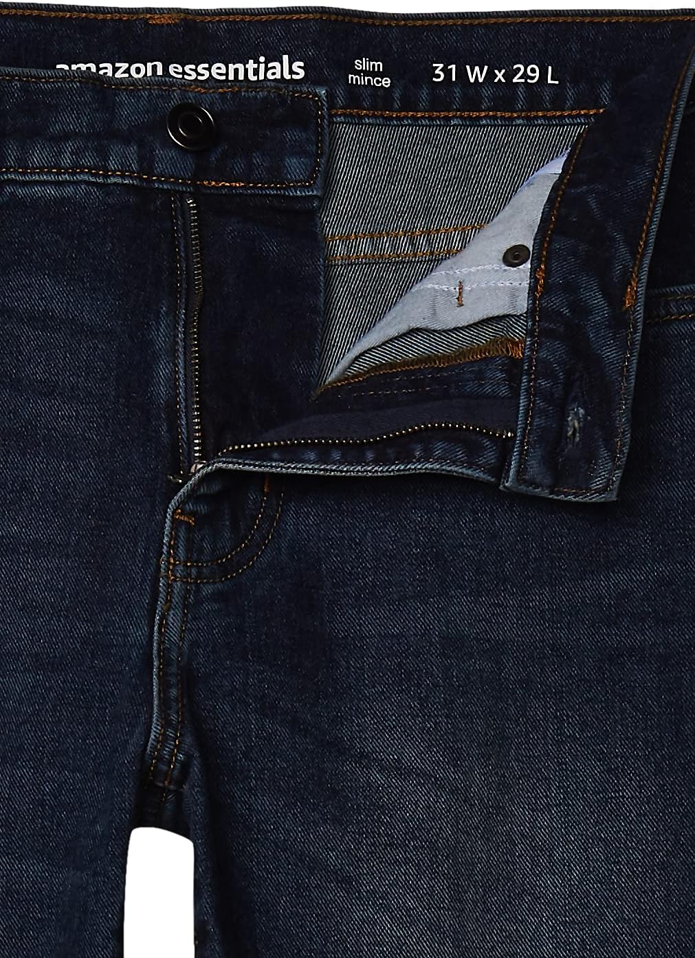 Crafted from mid-weight cotton denim, these blue jeans for men incorporate a light-stretch fabric, providing all-day comfort. The classic design includes five pockets, a zippered fly, metal button closure, bartack reinforcements, and rivets at the front hand pockets. With a variety of denim washes and solid colors, these Amazon Essentials men’s slim jeans offer men’s clothing that combines affordability and high standards.