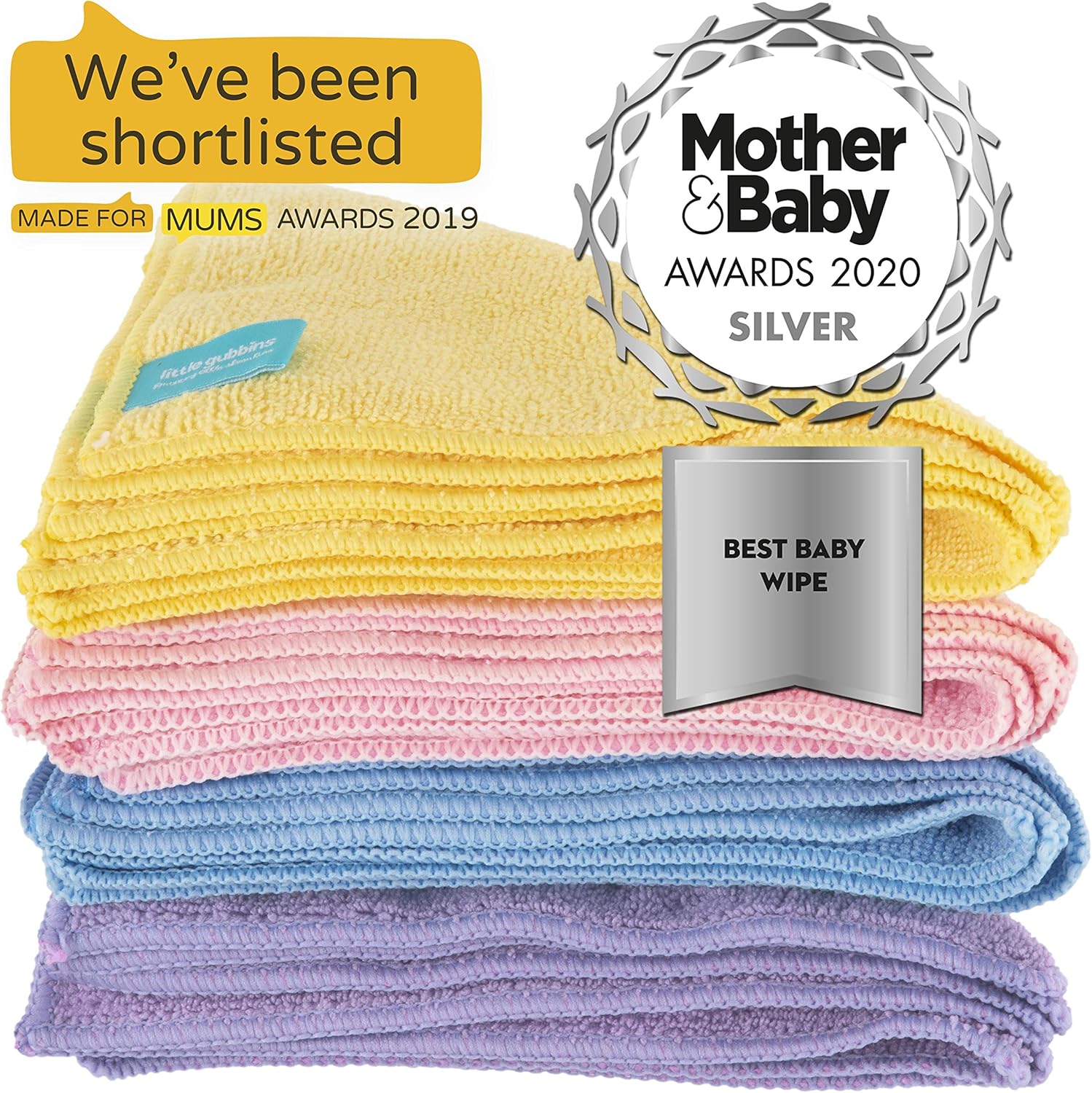 PERFECT ALTERNATIVE TO WET WIPES: say goodbye to disposable baby wipes with this pack of 20 reusable microfibre cloths in 4 colours, navy, red, pink and turquoise. A long lasting wash and reuse solution that will help the planet and save you moneyIDEAL FOR SENSITIVE SKIN: Little Gubbins wipes are AZO free and contain no harmful dyes so are perfect for protecting your baby’s delicate skinUSE WET OR DRY: use dry or with a little water. Each flannel is super soft and will leave your baby happy – no more battles when it comes to clean up time, yay! A weaning must haveREMOVES 99% OF BACTERIA: the unique properties of microfibre make it extremely absorbent and effective at cleaning without the need for any chemicals. And it dries fast, making it hard for bacteria to grow, so no yukky flannel smells. Ideal for cleaning mucky hands and faces (we would not recommend for cleaning poo)FREE LAUNDRY BAG: included is a 30 x 40cm laundry bag so you can protect your wipes in the wash. Also great for storage and laundry when you travel